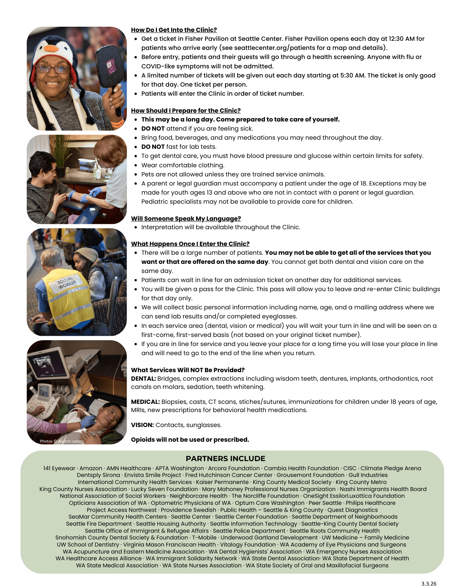 Seattle/King County Clinic is a volunteer-driven, free health clinic that occurs for four days each year at Seattle Center. The Clinic welcomes anyone in the region who struggles to access and/or afford healthcare.